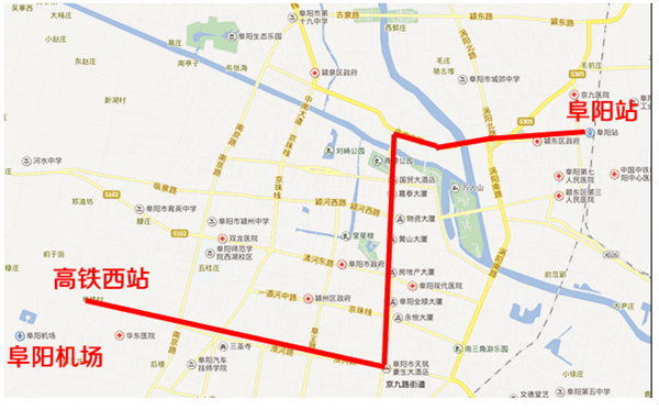 1号线:高铁西站—淮河路—颍州路—北京东路—阜阳火车站,全长18.1千米。